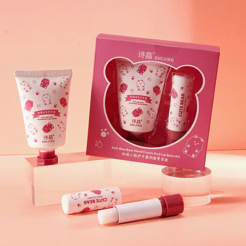 كريم ترطيب اليدين و بلسم شفاه اللون وردي